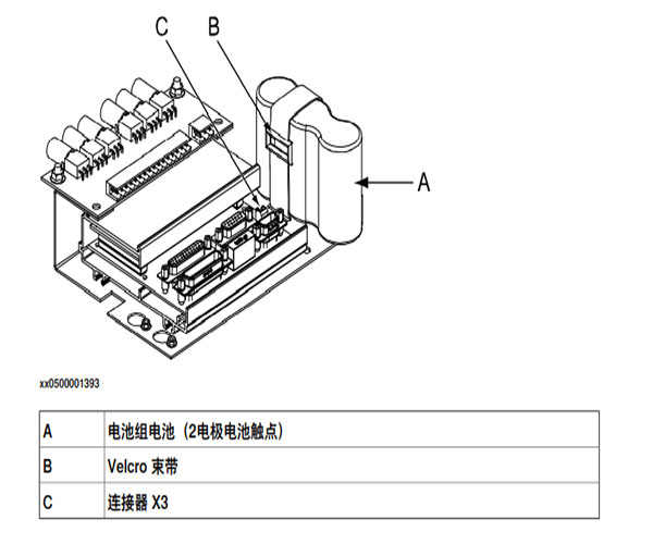 注意:當需要更換電池時,將會顯示電池低電量警告(38213 電池電量低)。建議在電池 更換完畢前保持控制器電源打開,以避免機器人不同步。 對于具有 3 電極觸點的 SMB 電路板(RMU101 3HAC044168-001 或 RMU102 3HAC043904-001),新電池的壽命通常是 36 個月。 對于具有2極電池觸點的SMB板,如果機械手斷電2天/周,新電池的通常壽命為36個 月;如果機械手斷電16小時/天,則為18個月。通過電池停機維護程序,可延長壽命 以延長生產中斷時間。