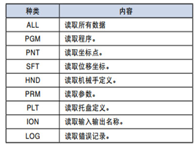 ・當(dāng)作為 ALL 文件以及參數(shù)文件讀取數(shù)據(jù)時,控制器必須處于伺服關(guān)閉狀態(tài)。另外,讀取數(shù)據(jù)之后,將變?yōu)?nbsp; 原點復(fù)歸未完成狀態(tài)。