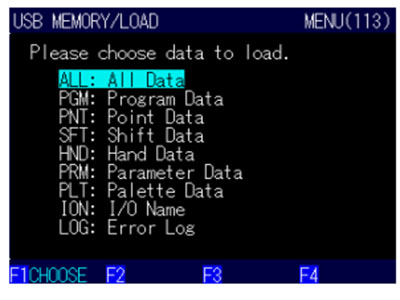 請通過光標(biāo)鍵選擇要加載的數(shù)據(jù)種類,然后按下 F1