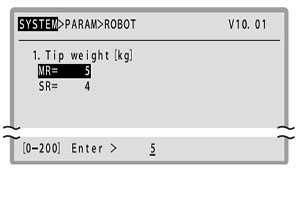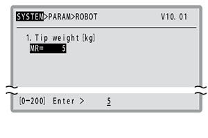 以 kg 為單位設置機器人前端重量(工件重量+工具重量)。
