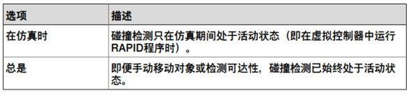 如要設置始終或僅在仿真期間設置檢測碰撞,請遵照下列步驟:
