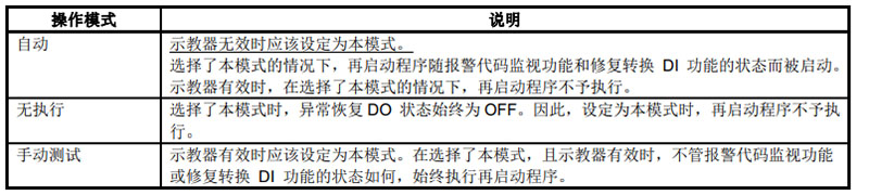 顯示異常恢復(fù) DO (恢復(fù)信息DO)的狀態(tài)。即使在尚未登錄異常恢復(fù) DO 的情況下,也可以觀察其狀態(tài),所以可了解執(zhí)行再啟動程序,還是執(zhí)行原程序。