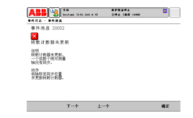 ABB機(jī)器人維修 報(bào)警代碼:20032(轉(zhuǎn)數(shù)計(jì)數(shù)器未更新)